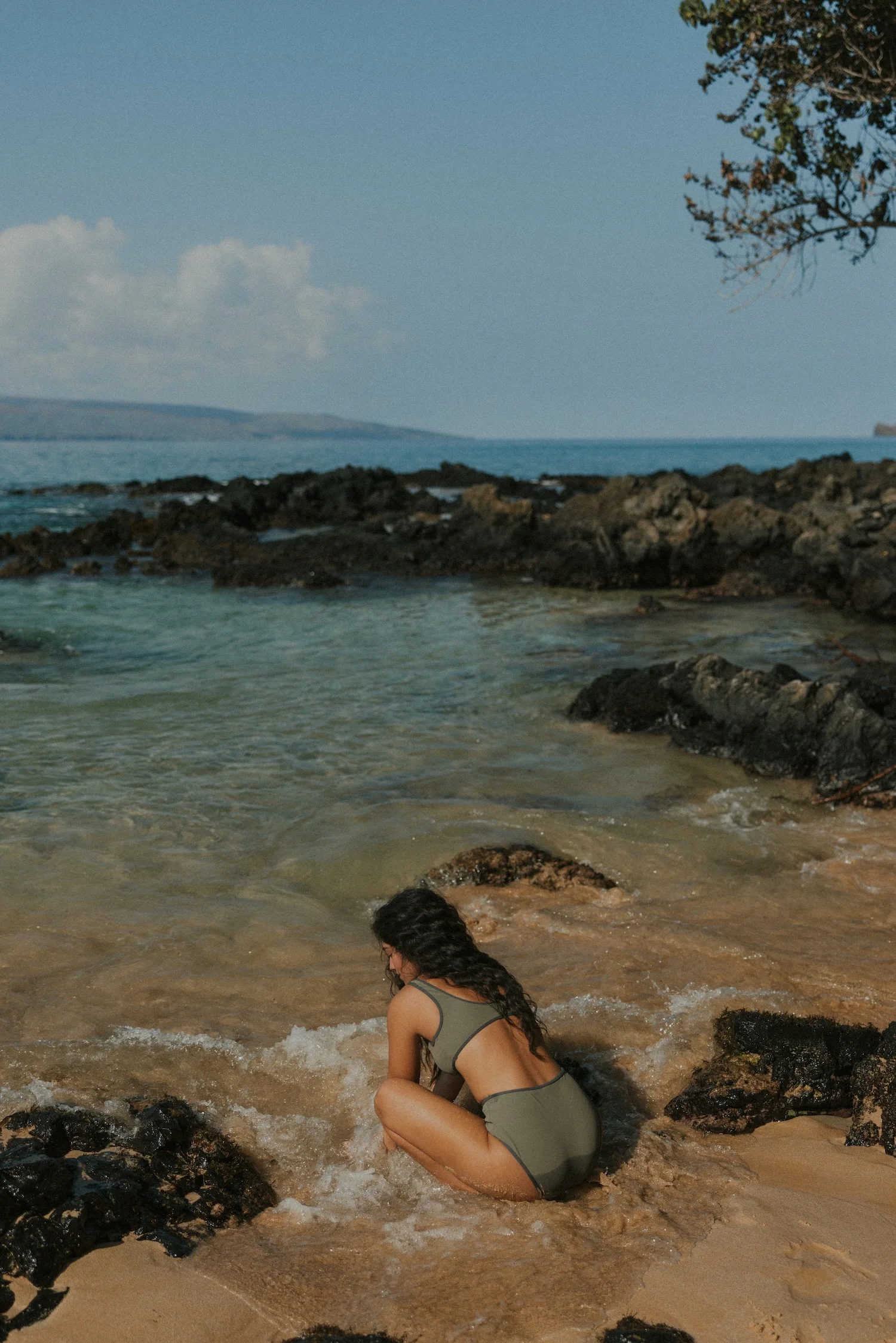 Designed to flatter without trying too hard, the Haze High Waisted Bottoms offer a confident, sculpted fit. Crafted from ribbed, stretch fabric in a soft olive tone, these bottoms sit comfortably at the natural waist for smooth, supportive coverage. The clean waistband creates a streamlined silhouette while offering modest coverage through the hips and back. Thick, textured fabric ensures a secure fit that moves with you. Easy, grounding, and timeless, the Haze Bottoms complete a polished swim look.